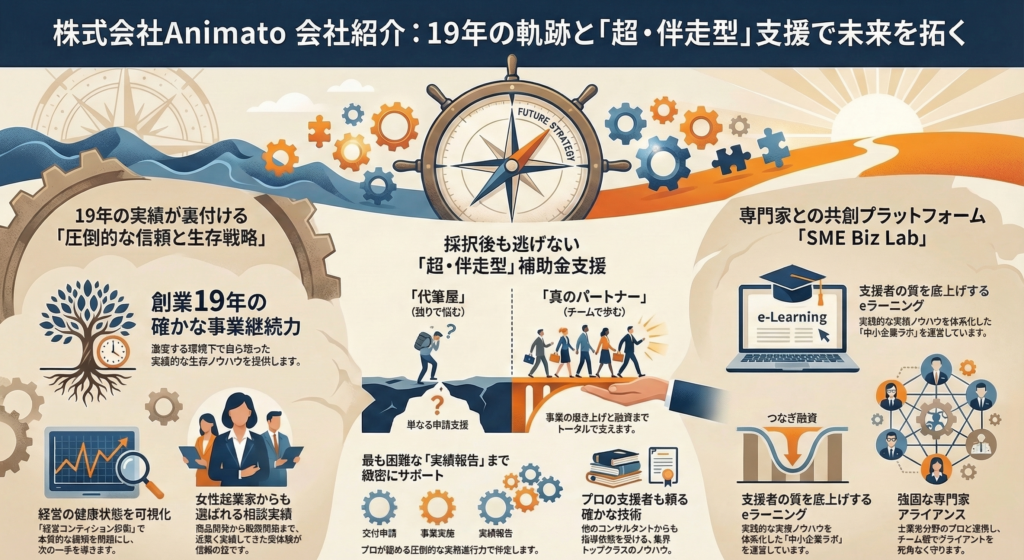 各種補助金(事業再構築補助金・ものづくり補助金・小規模事業者持続化補助金・事業承継/引継ぎ補助金・IT導入補助金など)の相談およびコンサルティングを行います。